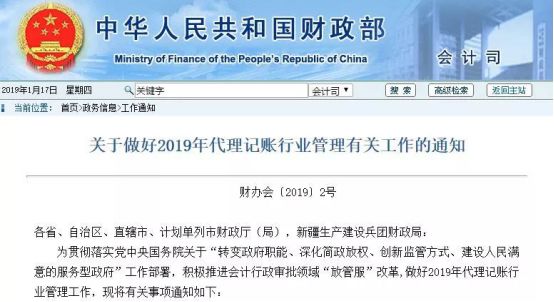 1月16日,财政部刚发布《关于做好2019年代理记账行业管理有关工作的通知》: