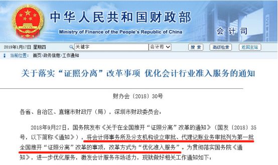 无独有偶,在两个月前的11月9日,财政部还发布了《关于落实“证照分离”改革事项 优化会计行业准入服务的通知》,提到将会计师事务所及分支机构设立审批、代理记账业务审批列为第一批全国推开“证照分离”改革的事项。